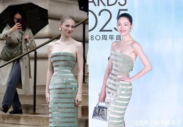 男明星也没法躲。米卡穿了一身裸色薄纱,风一吹,看着像没穿衣服。他硬着头皮,拽拽纱衣,嘴里嘟囔:“我真有穿。”工作人员提醒别着凉,他说“习惯了”。那场面,真有点像冬天出门忘带外套,冷得直哆嗦,还要装镇定。钟楚曦撞衫战神亨特·莎弗。两人同款条纹透视裙,肩颈线条都很绝。粉丝直接开撕。有人夸身材撑得住,有人说撞衫太尴尬。其实说到底,能把礼服穿出气场,靠的不是牌子,是那股子狠劲。小帕更洒脱。黑皮衣粗腰带长靴,走得跟赶任务一样。她说走完就去吃饭,主持人笑她像上梁山。网友调侃,她不是走红毯,是去抢地盘。很实在。她不吸气,不踮脚,不假笑,反而让人松了口气。看多了端着的美,偶尔来点松弛,真的舒服。03