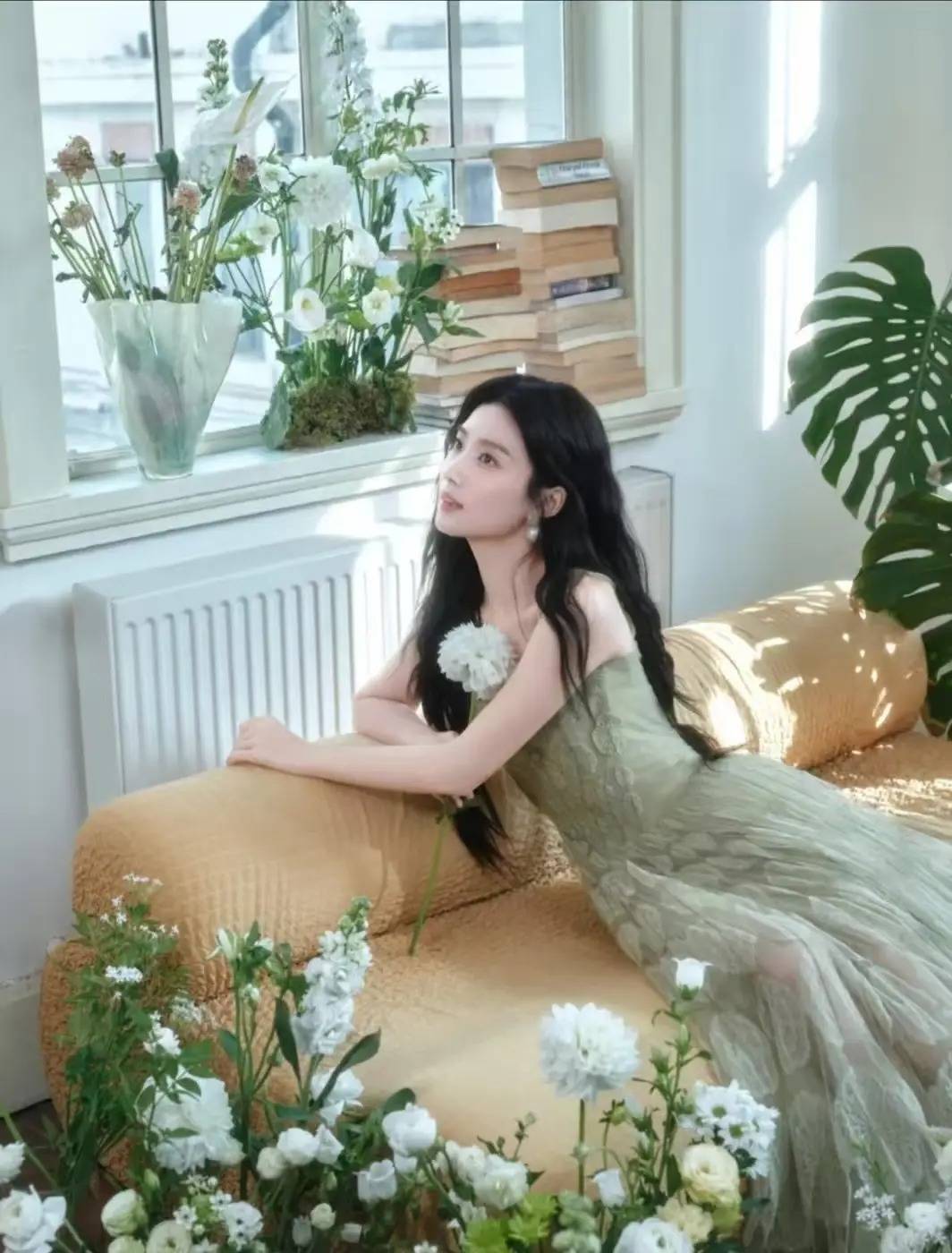 姐妹们快来吸花!卢昱晓这组春日写真简直是把整个花园穿在了身上!淡绿色的蕾丝裙配上满屋子的白鲜花,阳光洒下来的时候,活脱脱一个刚从森林里跑出来的花仙子,清新又灵动,看完感觉连空气都变甜了!先看她身上这条裙子,也太会选了吧!淡绿色的吊带长裙,上面全是镂空的花纹,像春天刚长出来的嫩叶,又仙又温柔。裙摆层层叠叠的纱料,走起路来轻轻飘动,像花瓣在风中飞舞。最绝的是裙子的颜色,不是那种俗气的荧光绿,是带着点灰调的莫兰迪绿,衬得她皮肤白到发光,简直是行走的反光板!再看这布景,简直是每个女生的梦想房间!窗户边摆满了各种白色的鲜花,沙发上、地板上也全是花,连空气里都像飘着花香。阳光透过窗户洒进来,在她头发上、裙子上投下斑驳的光影,画面美到像电影截图。她抱着一朵大白花靠在沙发上,眼神微微向上看,像在和花儿说话,又甜又灵动,心都要化了!还有她站在白色窗帘后面那张,简直是仙女下凡!她轻轻拉开窗帘,露出一双小鹿般的眼睛,淡绿色的裙子在阳光下闪着微光,周围全是白色的鲜花,像从童话书里走出来的公主。头发自然地披在肩上,卷卷的像海藻,配上珍珠耳环,精致又不失灵动。最让我惊艳的是湖边那张!她穿着另一套更浅的绿色纱裙,坐在湖边的石头上,背后是波光粼粼的水面。阳光洒在她身上,裙子的纱料变得透明,能看到里面的花纹,又纯又欲。她回头一笑,眼睛弯弯的像月牙,简直是春日里最美的风景!不得不说卢昱晓的气质也太适合这种森系风格了!她的五官清秀又灵动,眼神里带着一丝无辜,像个不谙世事的小仙女。尤其是她笑起来的时候,嘴角有两个浅浅的梨涡,甜得能掐出水来。这种清新自然的风格,在娱乐圈真的太圈粉了!看完这组图我悟了:春天就该和鲜花待在一起!卢昱晓这组大片不仅把春天穿在了身上,更把春天装进了镜头里,每一帧都美得像一幅画。姐妹们,赶紧学起来,穿上浅色系的裙子,去和春天撞个满怀吧!